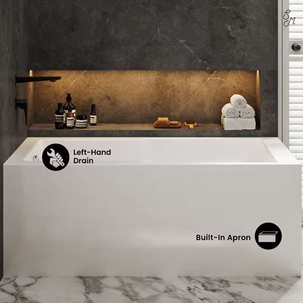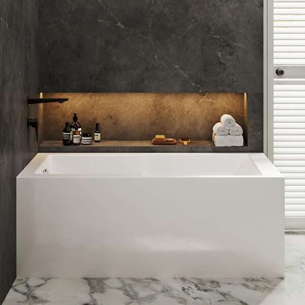 • Built-in apron: bathtubs with built-in aprons streamline installation with a preinstalled front avoiding the need for tile